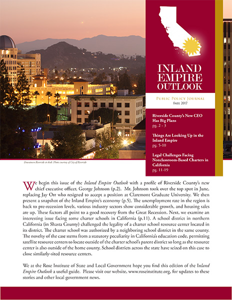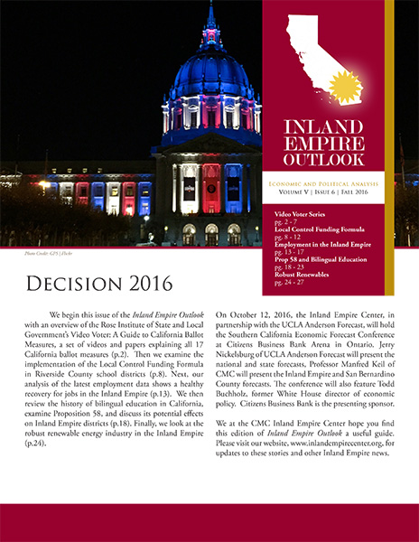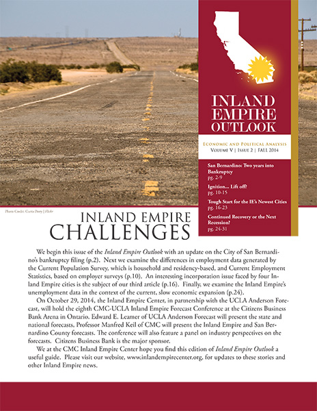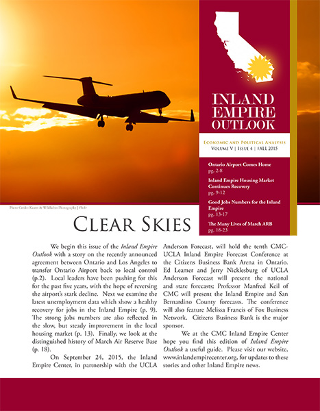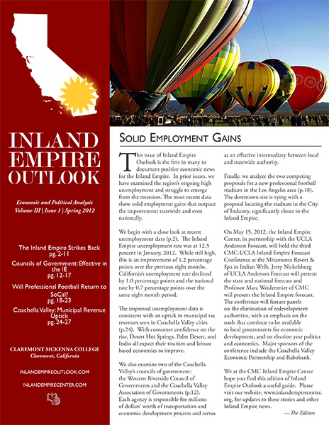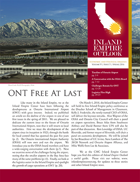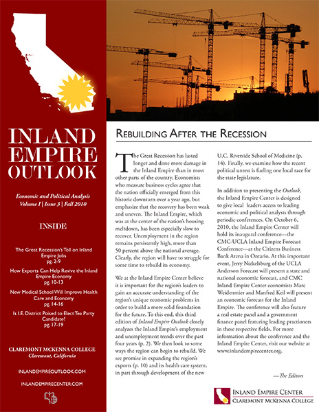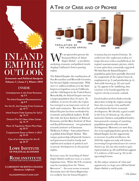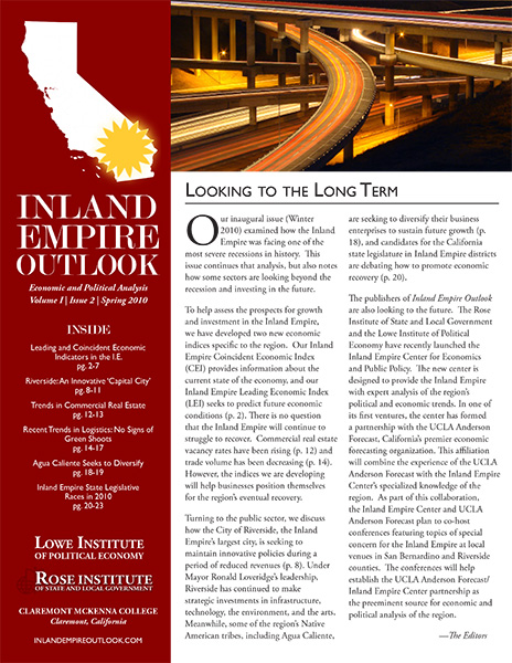 Since 2010, the Rose Institute has published the Inland Empire Outlook (IEO), a semi-annual publication that includes economic and policy analysis relevant to the Inland Empire region.