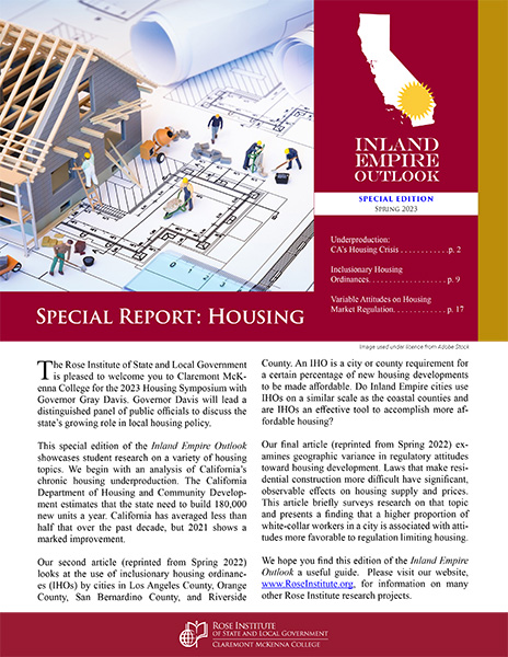 Spring 2023: Underproduction: CA's Housing Crisis | Inclusionary Housing Ordinances | Variable Attitudes on Housing Mark Regulations